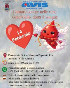 In occasione di San Valentino, AVIS – U.D.R. Provinciale di Roma e AVIS Comunale di Tivoli promuovono una speciale giornata di donazione del sangue all’insegna della solidarietà e dell’amore verso il prossimo.