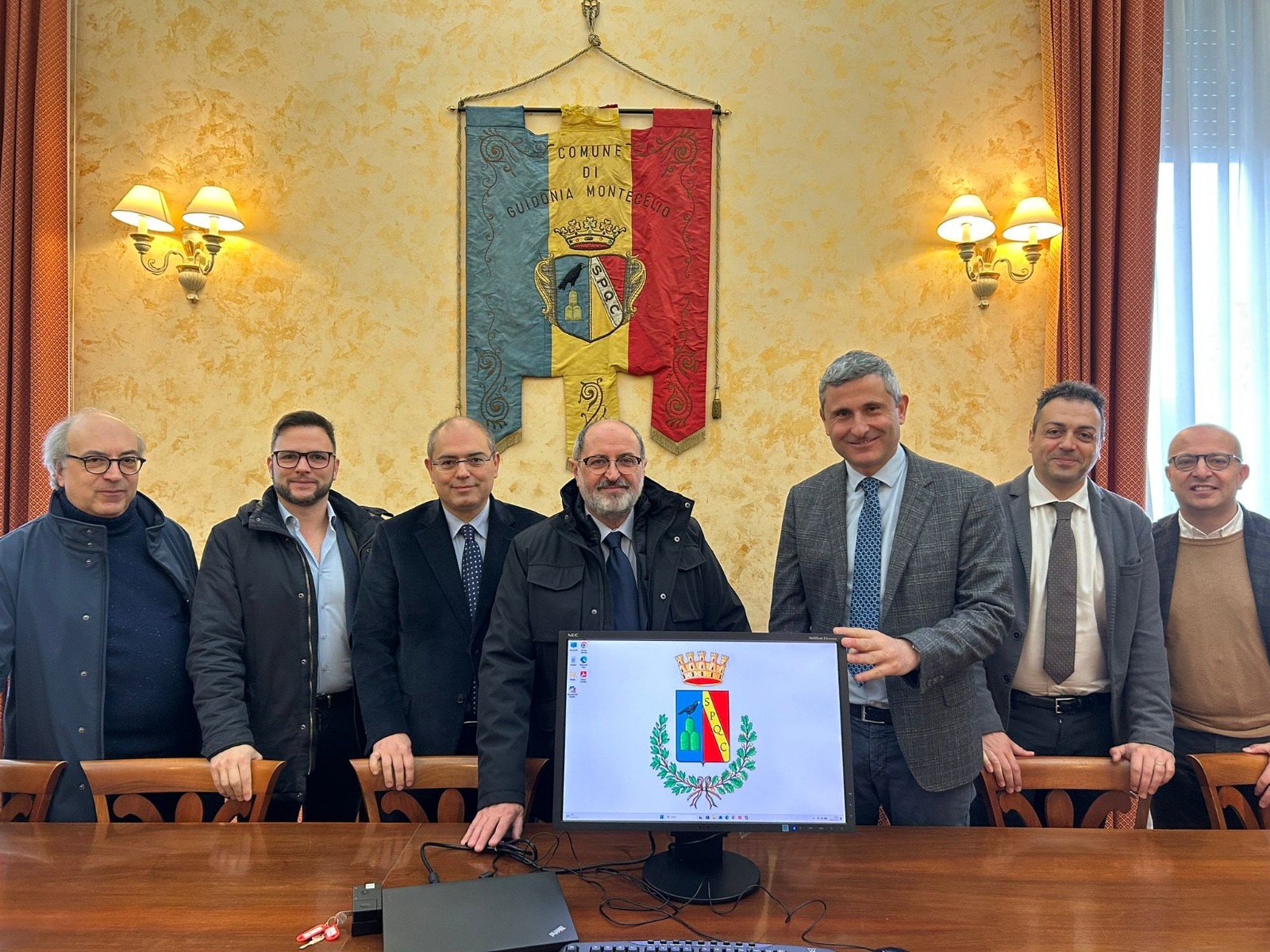 Questa mattina, nella Sala Giunta del Comune di Guidonia Montecelio, il Sindaco Mauro Lombardo, l’assessore alla Cultura Michele Venturiello e il Presidente del Consiglio comunale Erick D’Alisa hanno ricevuto il Sig. Nazzareno Iacoella, residente a Setteville, che ha donato all’Amministrazione 10 postazioni informatiche complete.