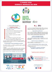 L’iniziativa è promossa dalla Fondazione Italiana del Rene (FIR) e dalla Società Italiana di Nefrologia (SIN), che da anni lavorano per sensibilizzare la popolazione sull’importanza della salute renale e della diagnosi precoce