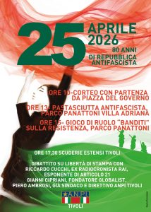 Il fine settimana sarà caratterizzato dalle iniziative per il 25 aprile per gli 80 anni della Liberazione dal nazifascismo. La mattina di sabato il consueto corteo istituzionale partirà alle ore 10 da Palazzo san Bernardino a Tivoli con il gonfalone della città di Tivoli e farà tappa a Piazza Rivarola per poi dirigersi al cortile della Rocca Pia presso le lapidi degli antifascisti tiburtini caduti per la libertà.