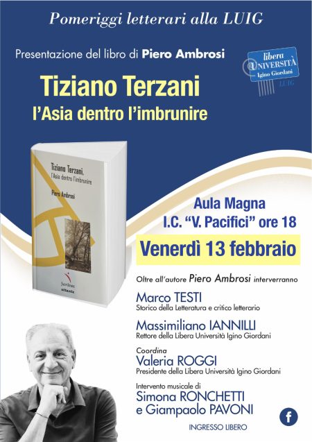 13 Febbraio 20261 Minuto di letturaINCONTRO Piero Ambrosi racconta Tiziano Terzani Un pomeriggio dedicato alla memoria e all’eredità culturale di Tiziano Terzani. È quello in programma venerdì 13 febbraio alle ore…