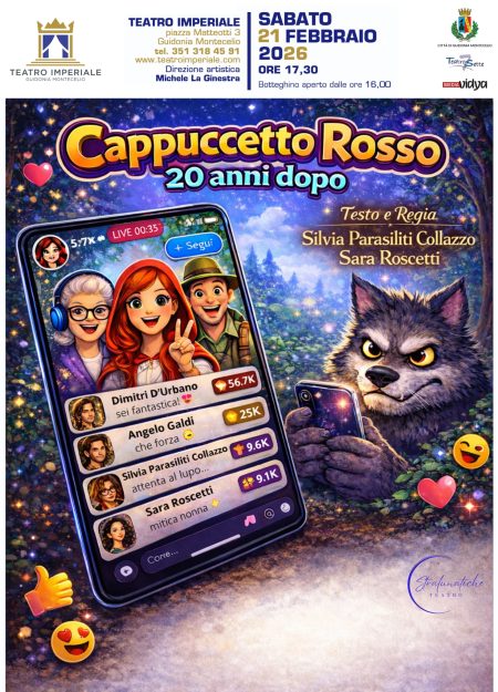 20 Febbraio 20261 Minuto di letturaSPETTACOLO Cappuccetto Rosso – 20 anni dopo Sabato 21 febbraio 2026, alle ore 17.30, il Teatro Imperiale di Guidonia Montecelio alza il sipario su uno spettacolo che…